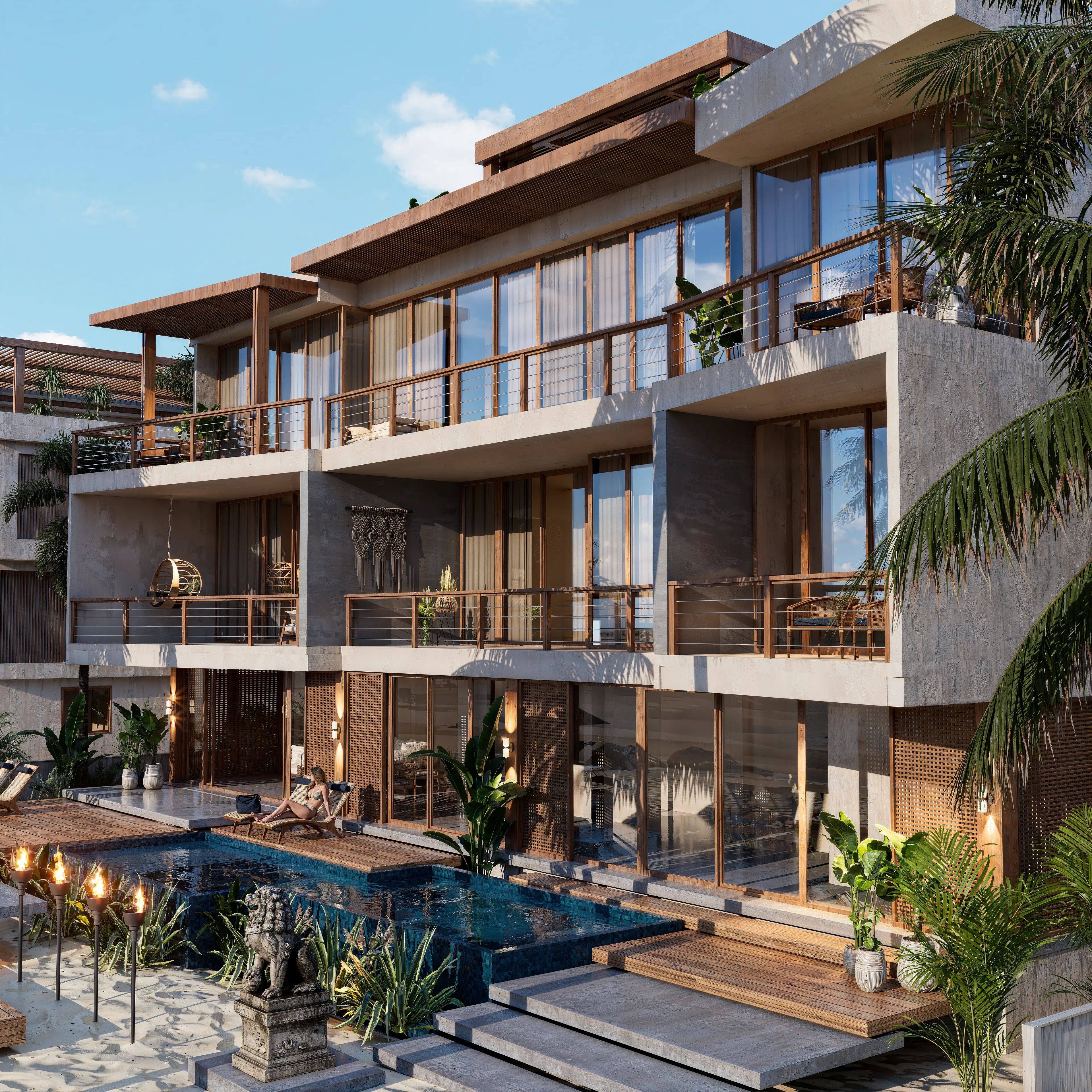 The main challenge of this project was to integrate multiple functions into a single building while maintaining a clear sense of independence between each space. Our clients envisioned a main residence, two separate condos, and a shared common or creative area—all within one cohesive structure.