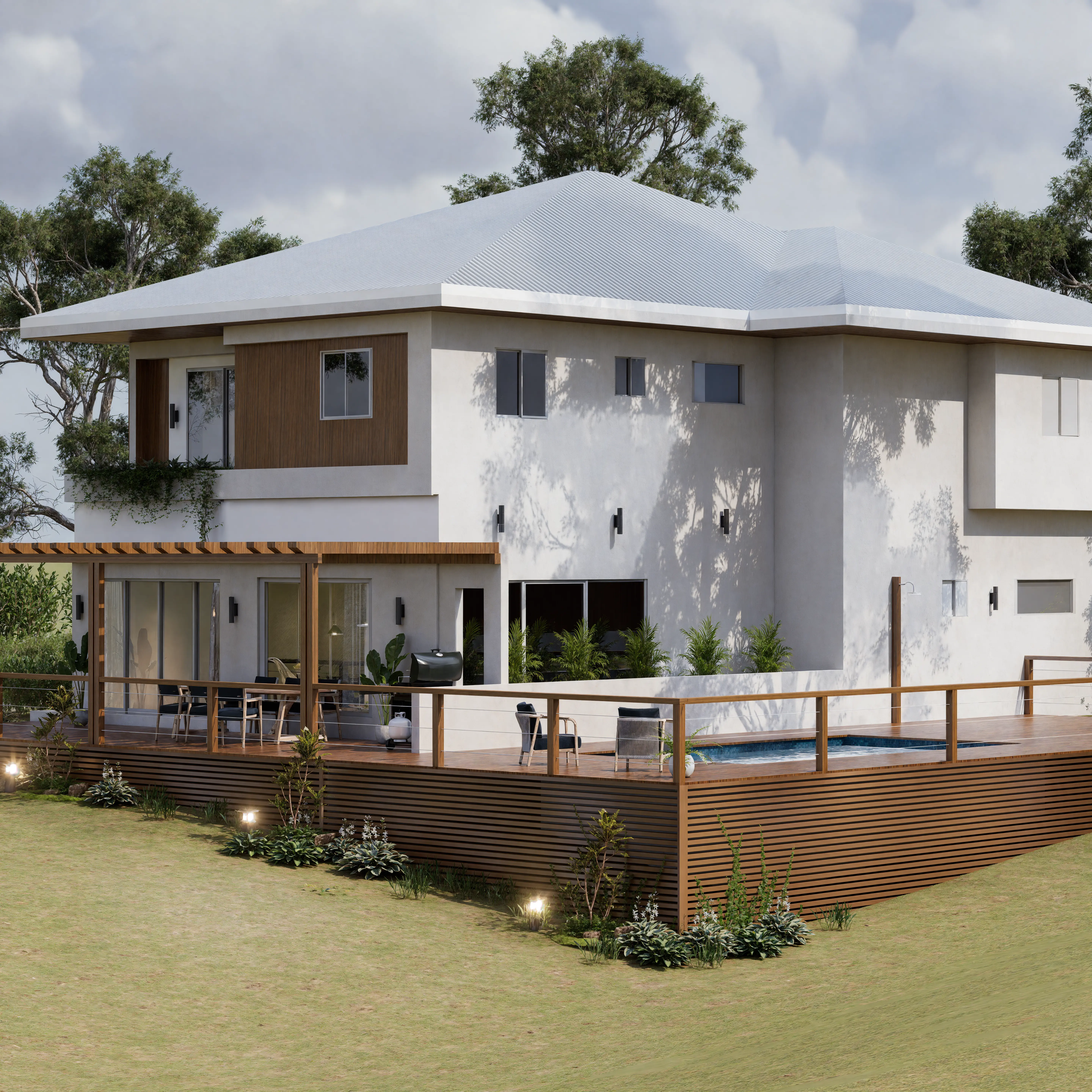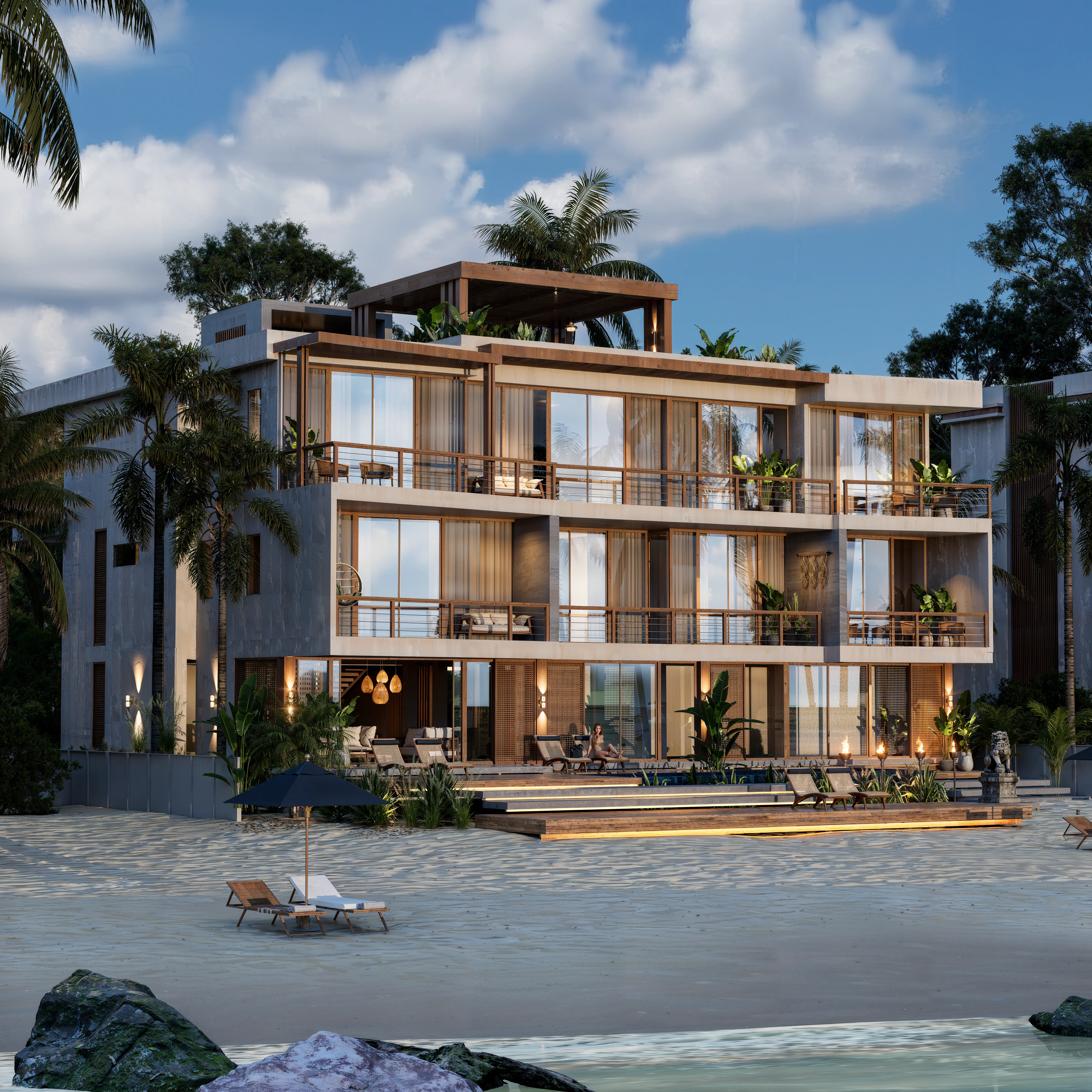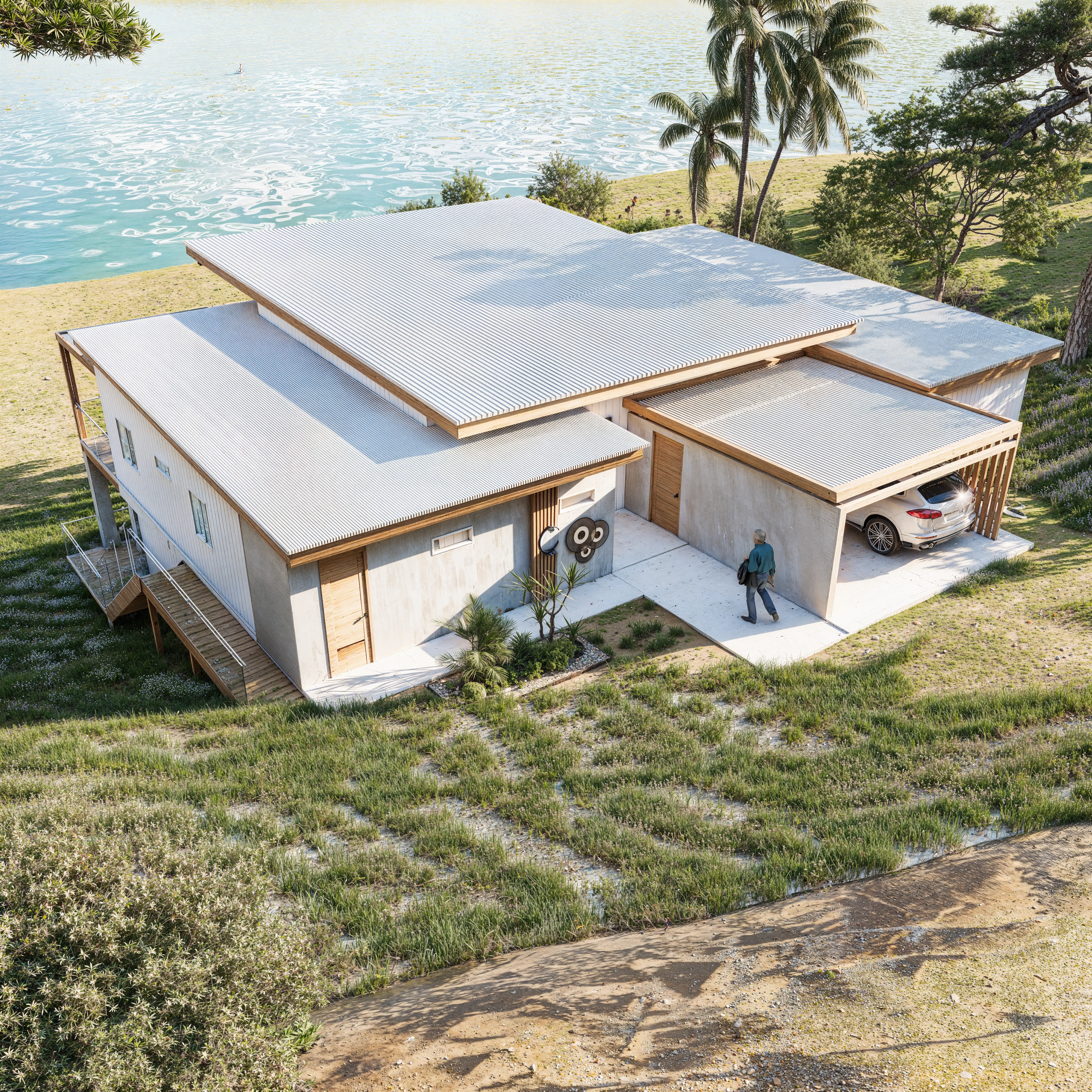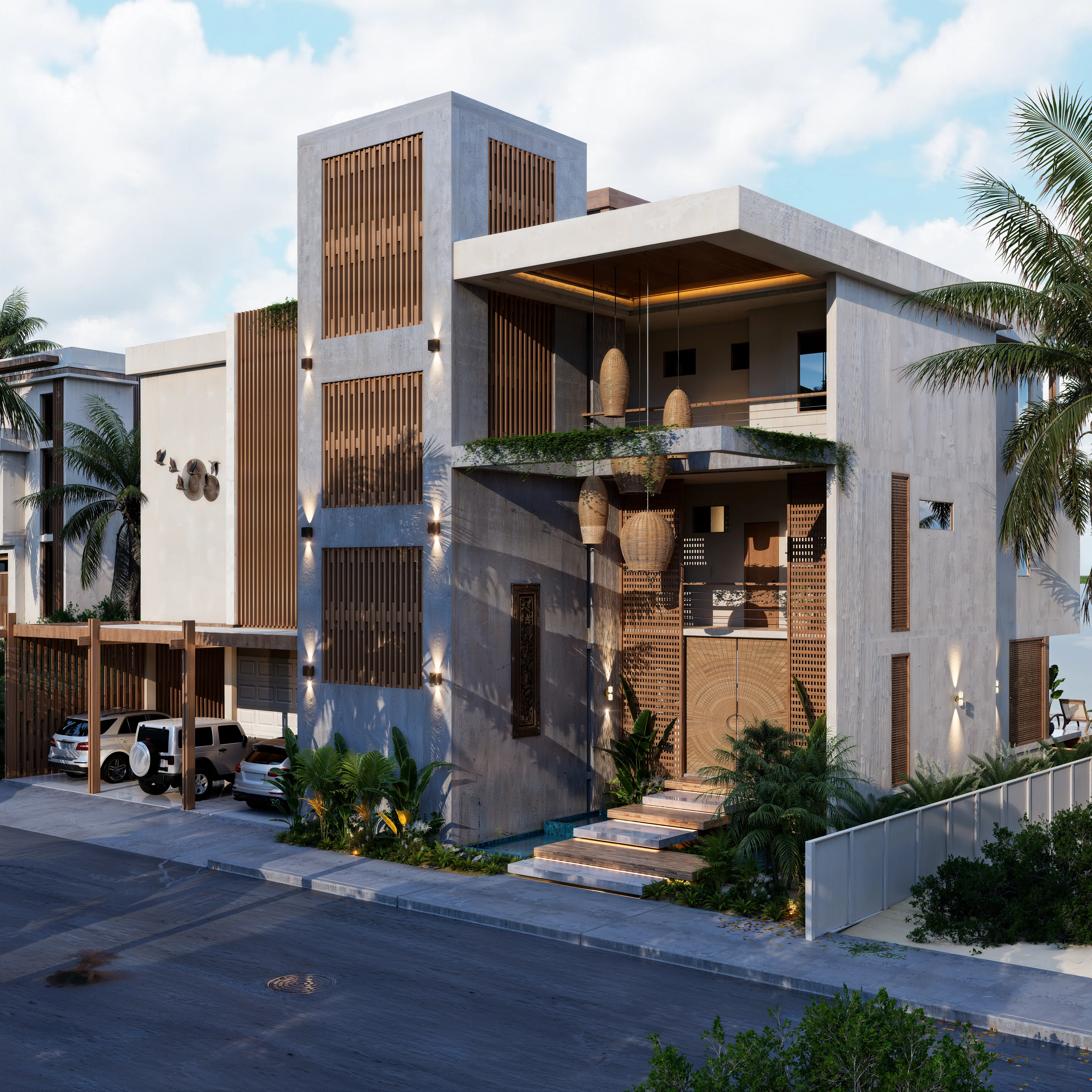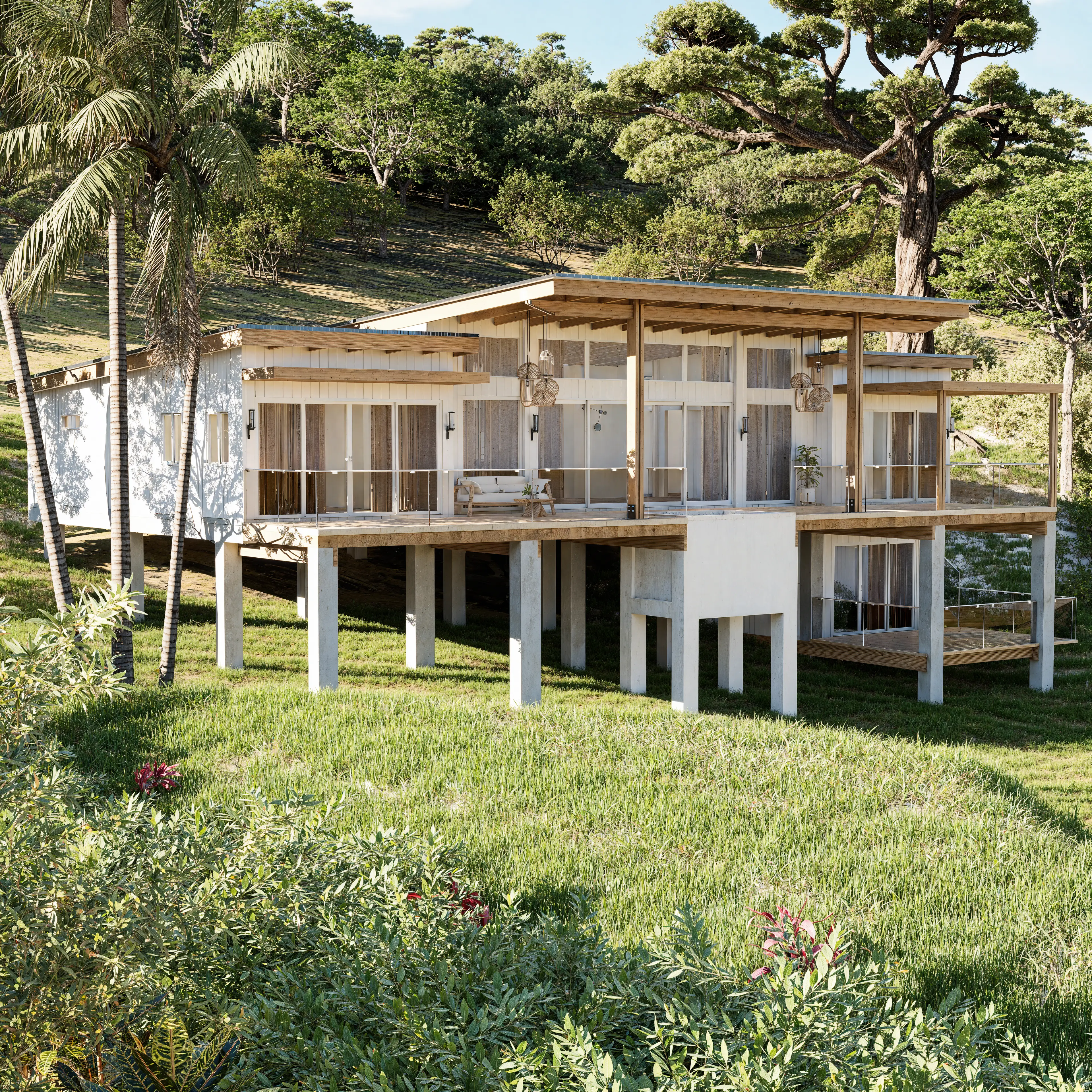 The client’s vision was to create a beach house designed primarily for vacations and family gatherings—a place where they could disconnect, relax, and enjoy time on the island with friends and loved ones. They were looking for a home that could naturally adapt to the tropical climate, providing comfort through thoughtful design rather than relying heavily on mechanical systems. The program included four bedrooms and three bathrooms, with spaces designed to feel open, inviting, and connected to the outdoors.