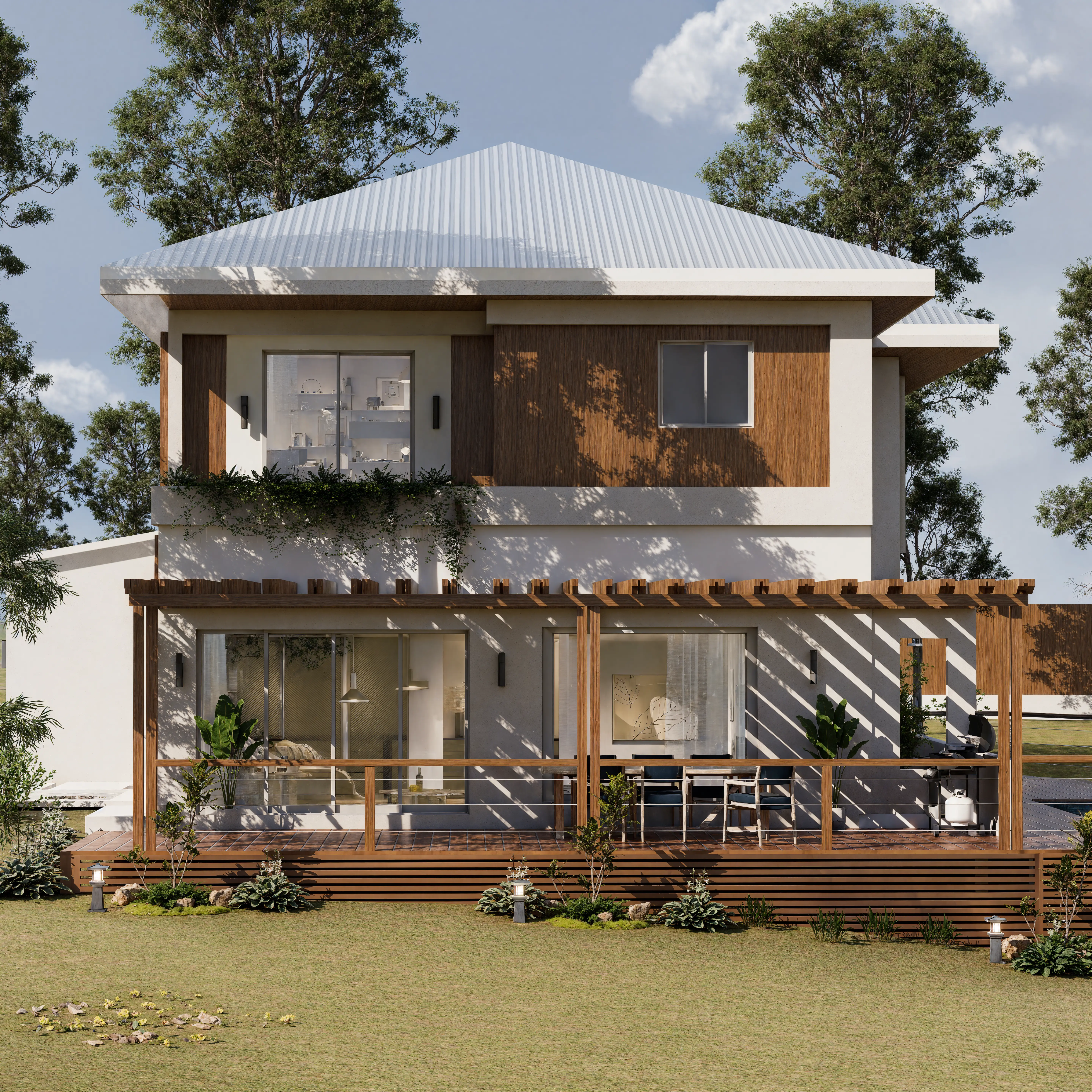 The final design reflects a modern tropical style—embracing natural light, ventilation, and a strong relationship with the surrounding environment.