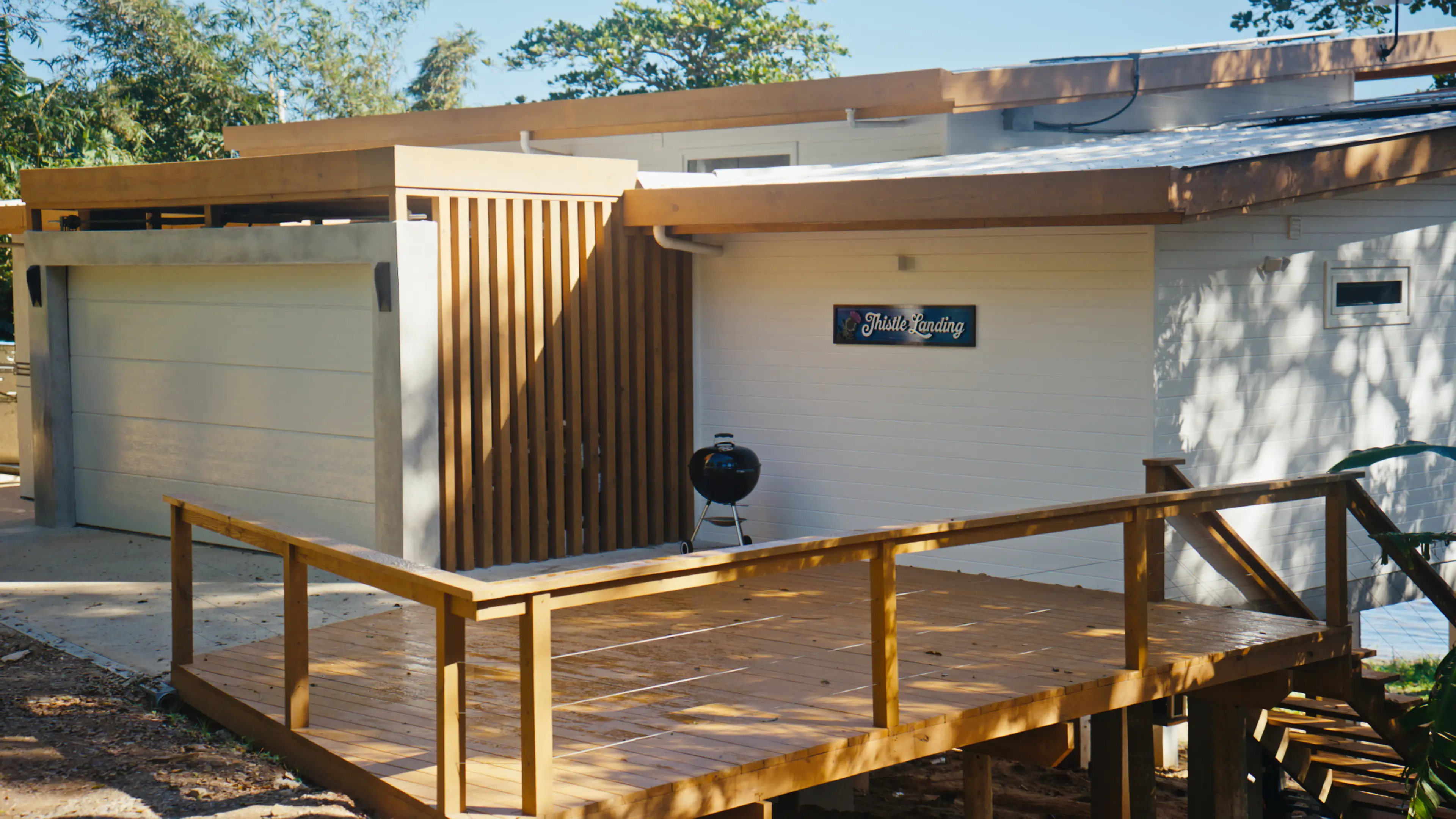 The house was envisioned as a base for their island lifestyle—easy access to the water, days spent boating to the bay, and evenings shared with friends in a relaxed, welcoming environment. A key aspect of the design was maximizing the use of natural resources. The house is carefully oriented to capture optimal natural light throughout the day, while also taking full advantage of prevailing breezes. This passive design approach enhances comfort within the space while significantly reducing the need for artificial lighting and mechanical cooling.